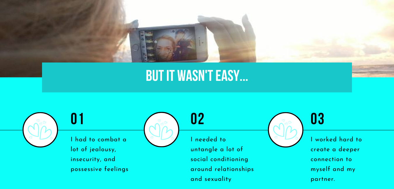 I learned how to handle those huge, gut-punch feelings: jealousy when my partner dated others, the fear that he’d leave me for someone who felt like a “better” fit, and the guilt of wanting my own freedom but hesitating to “share.”